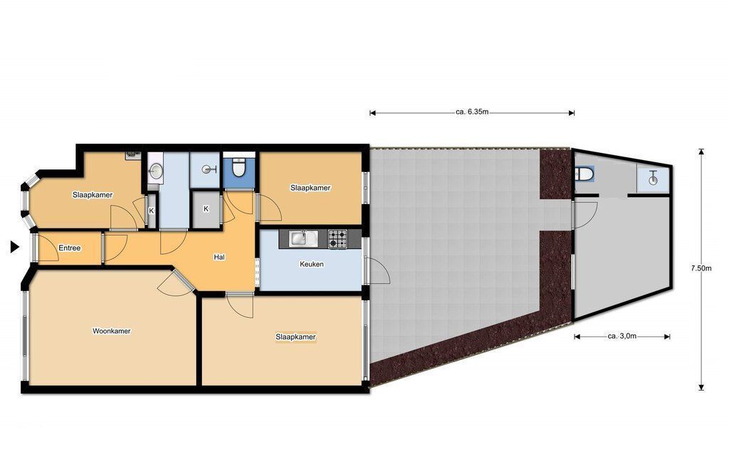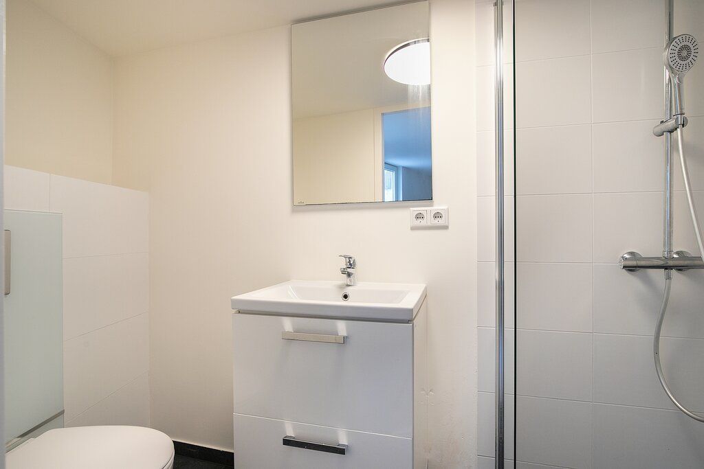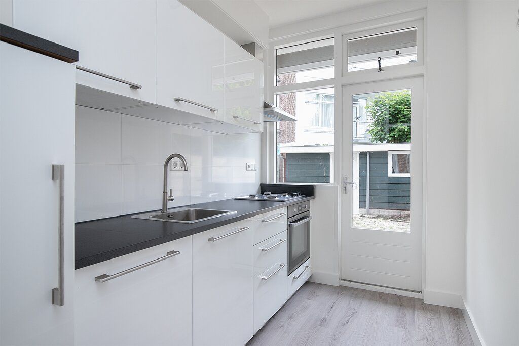 English version below. VERRASSINGSFACTOR! Deze volledig gerenoveerde parterrewoning is tot in de puntjes afgewerkt en van alle comfort voorzien. Het gehele appartement is onder handen genomen en zeer praktisch ingericht, met maar liefst 3 slaapkamers, een moderne tussengelegen badkamer en gesloten keuken voorzien van allerlei inbouwapparatuur. Bovendien grenst deze aan een heerlijke achtertuin gelegen op het zuidwesten, waar je dus volop van de zon kunt genieten! Maar wat dit appartement écht uniek maakt, vind je achterin de tuin: in de voormalige berging is een extra verblijf gerealiseerd met aansluitend een 2e badkamer inclusief apart toilet, wastafel met meubel én douche! Handig...