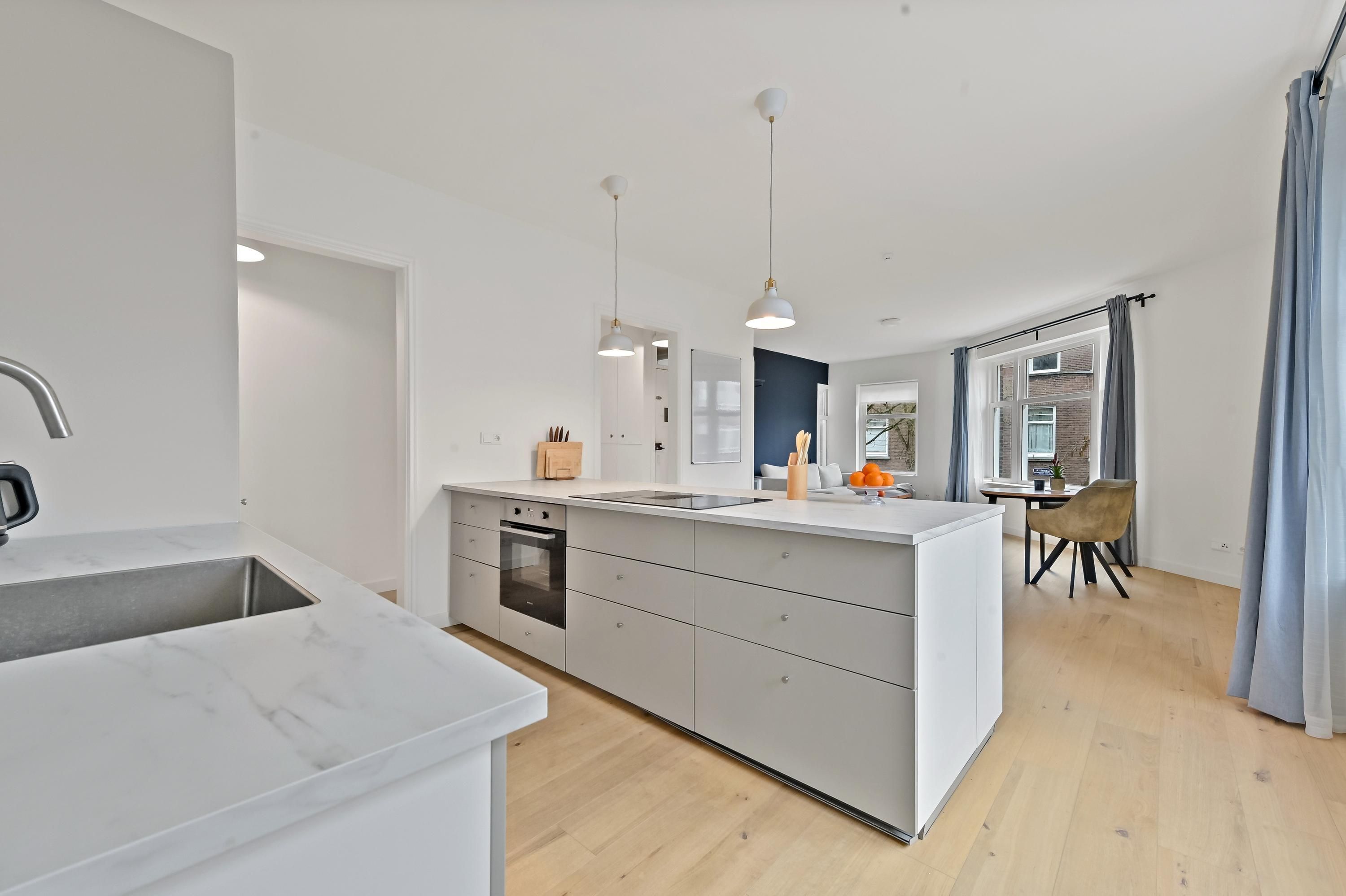 Instapklaar en modern hoekappartement met 3 slaapkamers Dit appartement is stijlvol gemoderniseerd, en biedt veel licht en ruimte, je kan het zo betrekken! Het heeft een A+ energielabel, een prachtige open keuken, een ruim balkon en is heel recent helemaal gerenoveerd. Gelegen in het gewilde en gezellige Bezuidenhout; in een zijstraat van de Theresiastraat met cafés, lunchrooms, restaurants, de bibliotheek en alle dagelijkse winkels. Station Den Haag Laan van NOI en Den Haag Centraal bereik met een paar minuten op de fiets. De tramhalte en de bushalte zijn op loopafstand, en hiermee ben je in binnen een kwartier in het centrum...