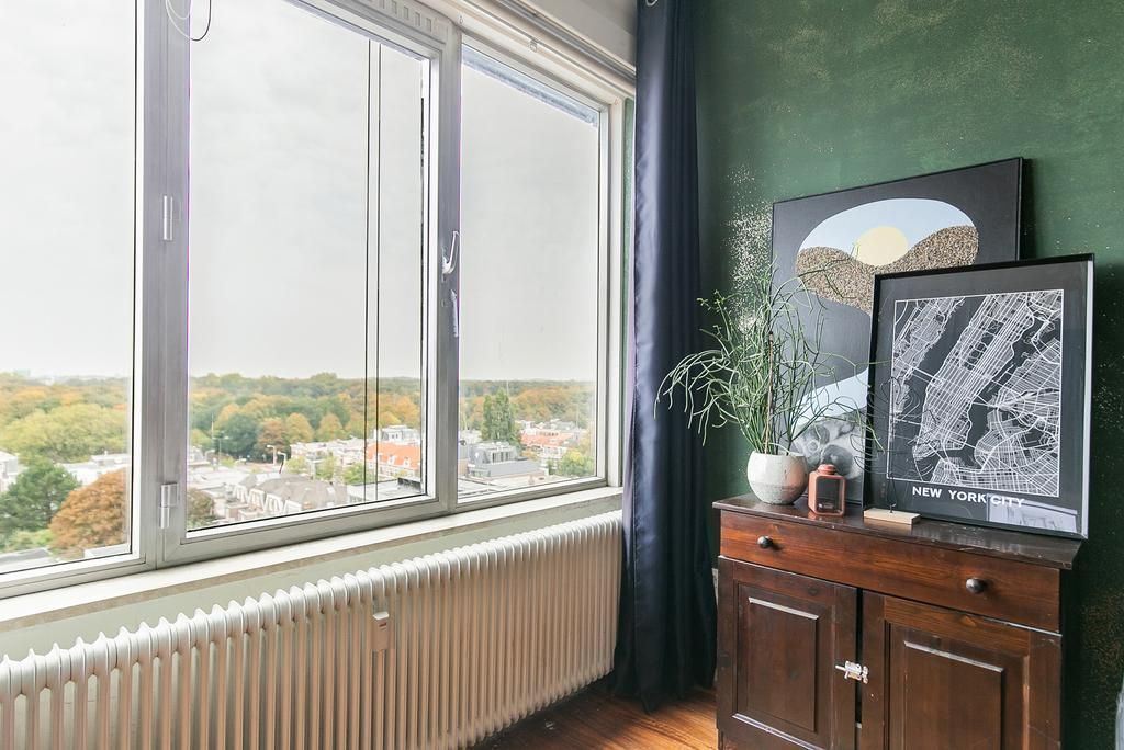 English text below Wonen op grote hoogte! Dit 5-kamer TOP en HOEK appartement heeft een geweldig uitzicht, elk seizoen weer een ander kleurenpalet. Super praktisch ingedeeld met 3/4 slaapkamers, een ruime keuken en twee balkons waar je heerlijk kunt genieten van de ochtend/middag en avondzon en natuurlijk niet te vergeten het uitzicht over de skyline van Den Haag! Met maar liefst 127 m2 woonoppervlakte en een eigen berging in de kelder is hier aan ruimte geen gebrek! Dit appartement is zeer centraal gelegen in het hartje van Bezuidenhout, pal naast het Haagse Bos en precies boven de winkelstraat "Theresiastraat" met alle winkels...