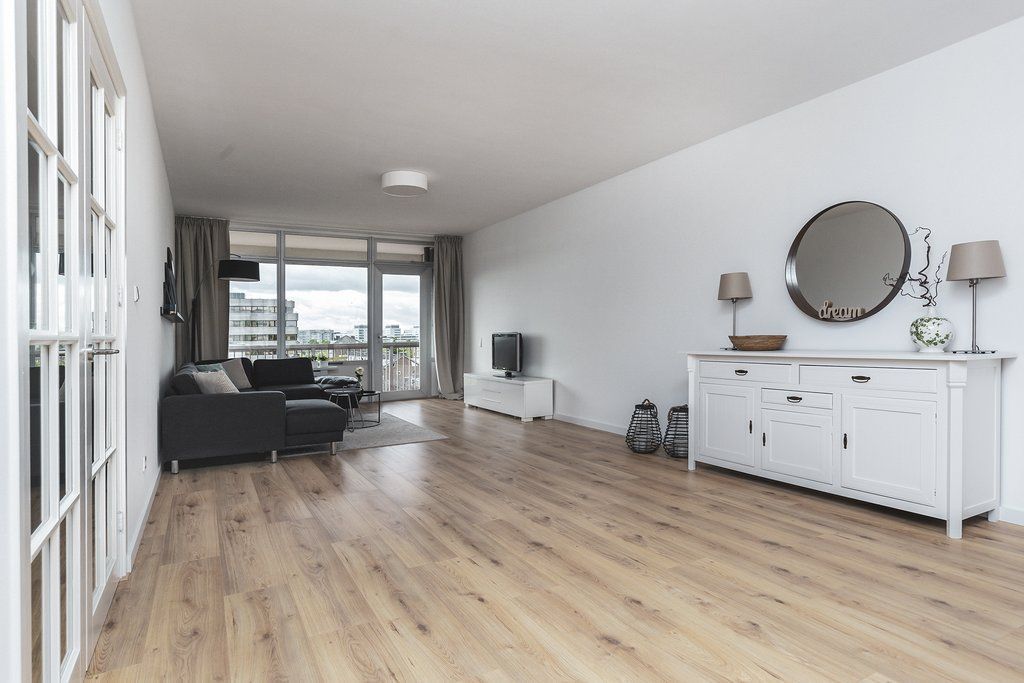 English version see below HOUSE WITH A VIEW! In dit VOLLEDIG GEMEUBILEERDE 4-kamer (2 slaapkamer) appartement kun je genieten van het comfort en de luxe van een volledig intern GERENOVEERDE woning en het karakter en de charme van een urban woonomgeving! Het appartement is gelegen op de vierde verdieping van een net complex en heeft een woonoppervlak van maar liefst 111m2(!!), het heeft een gigantische woon-/eetkamer, twee slaapkamers, een luxe gloednieuwe keuken met alle inbouwapparatuur die je je maar wenst, een moderne badkamer met inloopdouche en dubbele wastafel en een eigen berging in de kelder. Last but not least beschikt dit appartement over...