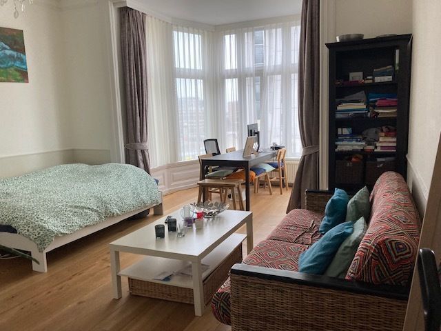 English version see below WONEN MET ZEEZICHT! Altijd al aan het strand willen wonen en de boulevard van Scheveningen?! Dat kan in deze deels gemeubileerde studio met erker gelegen in een schitterend en statig gerenoveerd vrijstaand herenhuis! De studio is gelegen dichtbij het Statenkwartier, Europol, OPCW, Tribunal, de "Keizerstraat" met haar gezellige winkeltjes en slechts 10 min van de snelweg richting Amsterdam, Rotterdam en Utrecht. Indeling: Trap naar gemeenschappelijk entree op de 1e etage, gemeenschappelijke kamer met wasmachine en droger. Entree studio, gesitueerd aan de voorkant. Woonkamer (ca. 4.83mx6.00m), erker, open keuken met een 2-pits elektrische kookplaat, koel/-vriescombinatie. Moderne badkamer met toilet, douche en...