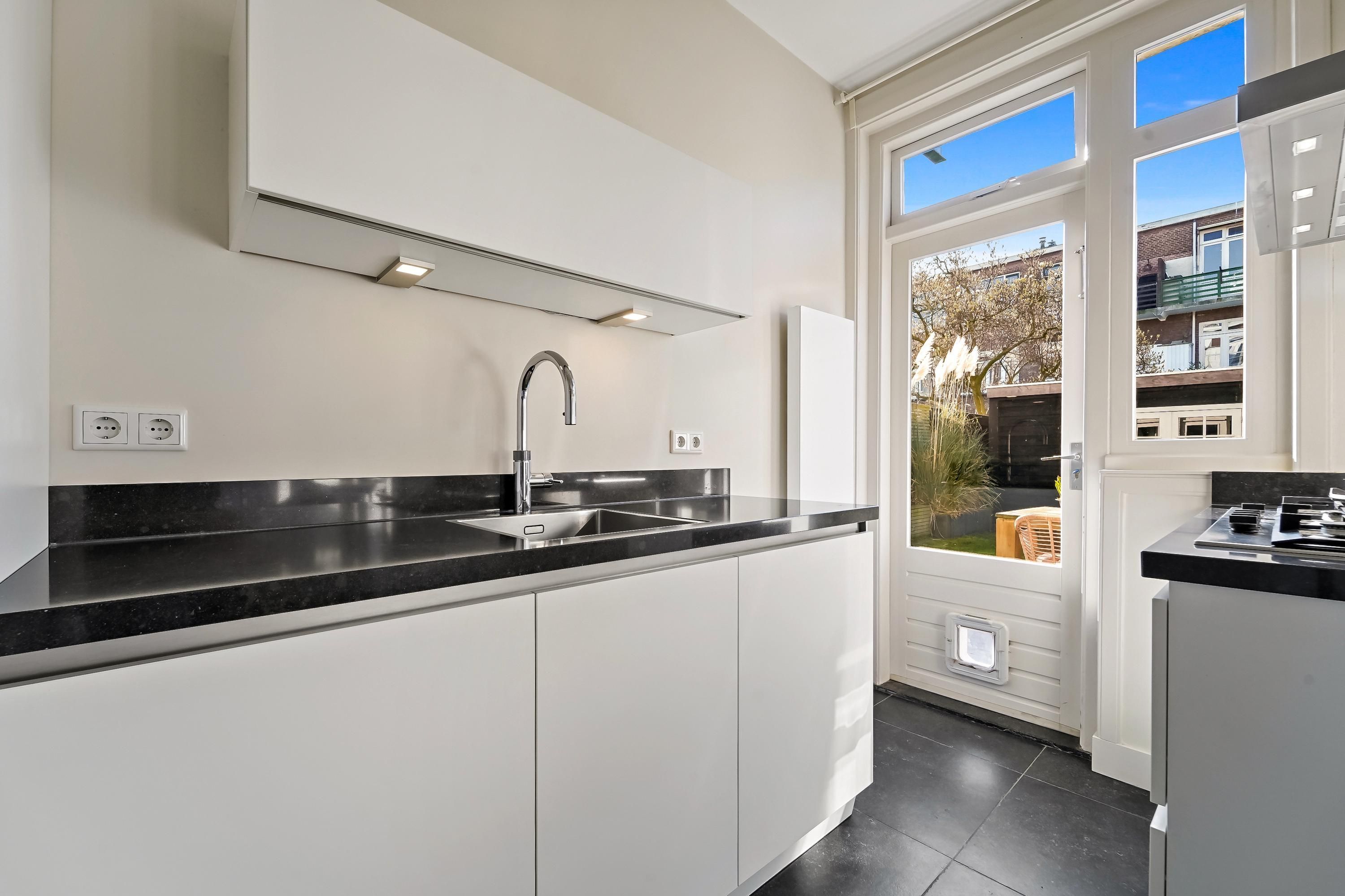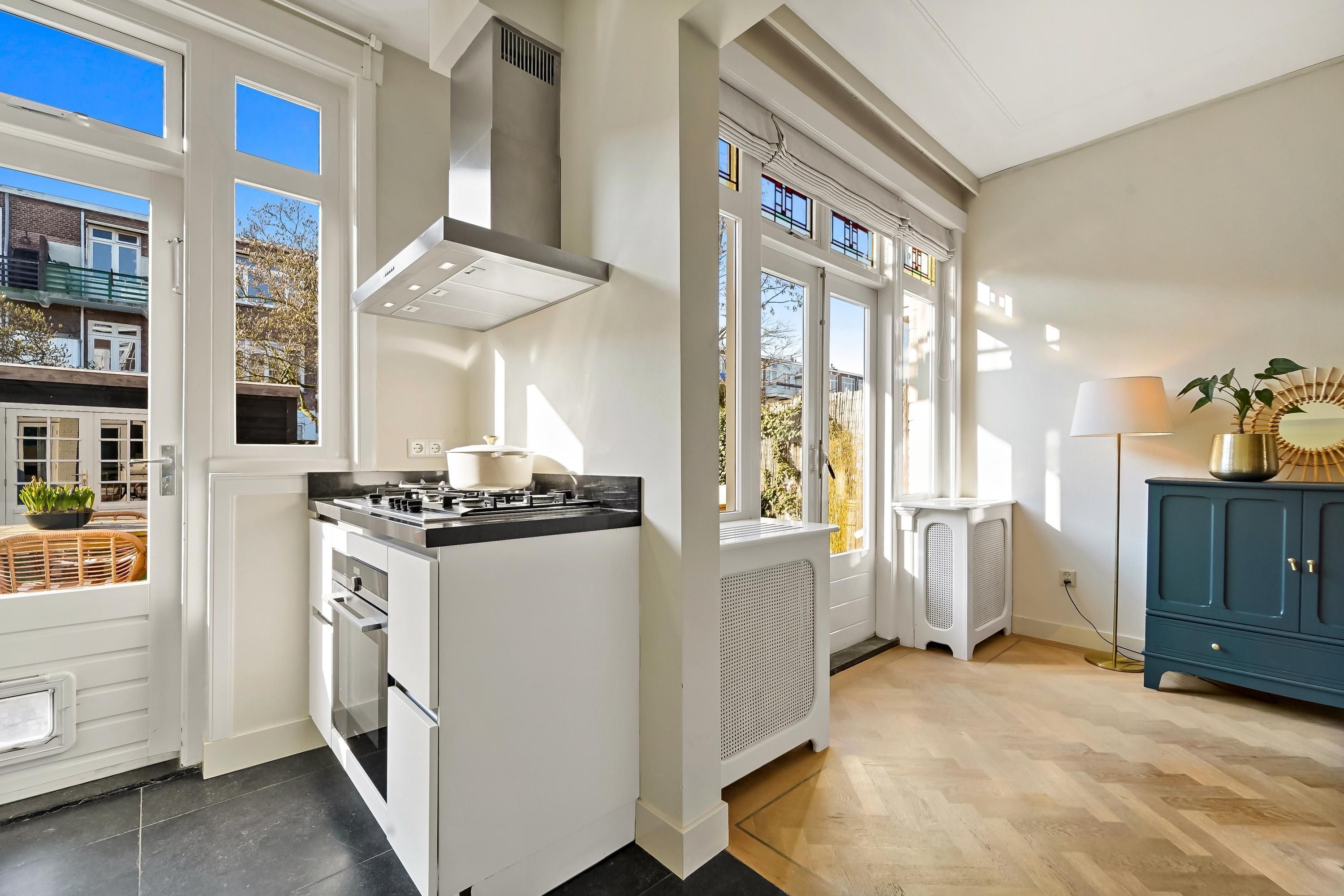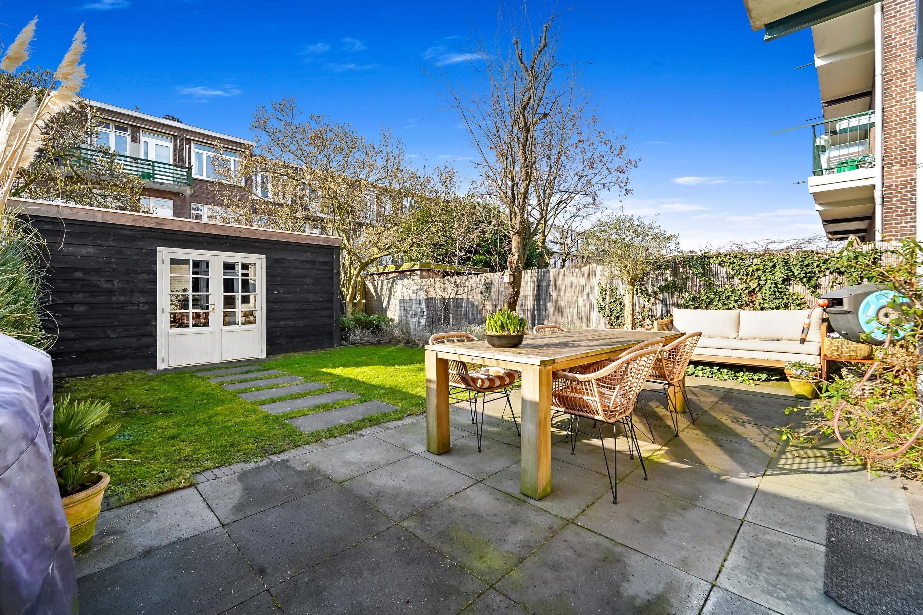 For english see below! Sfeervolle jaren '20 parterrewoning van ca. 92 m² met tuin op het zuiden in de boomrijke Stuyvesantstraat in het geliefde Bezuidenhout. In één van de meest karakteristieke straten van het populaire Bezuidenhout ligt deze charmante parterrewoning uit 1927. De woning combineert de sfeer van een jaren ’20 huis met het comfort van nu en beschikt over een heerlijke zonnige achtertuin op het zuiden en een vrijstaande schuur van ca. 14 m². De woonkamer is licht en ruim met de originele suite en staat in open verbinding met de moderne open keuken. Deze is uitgevoerd met een praktisch schiereiland en...