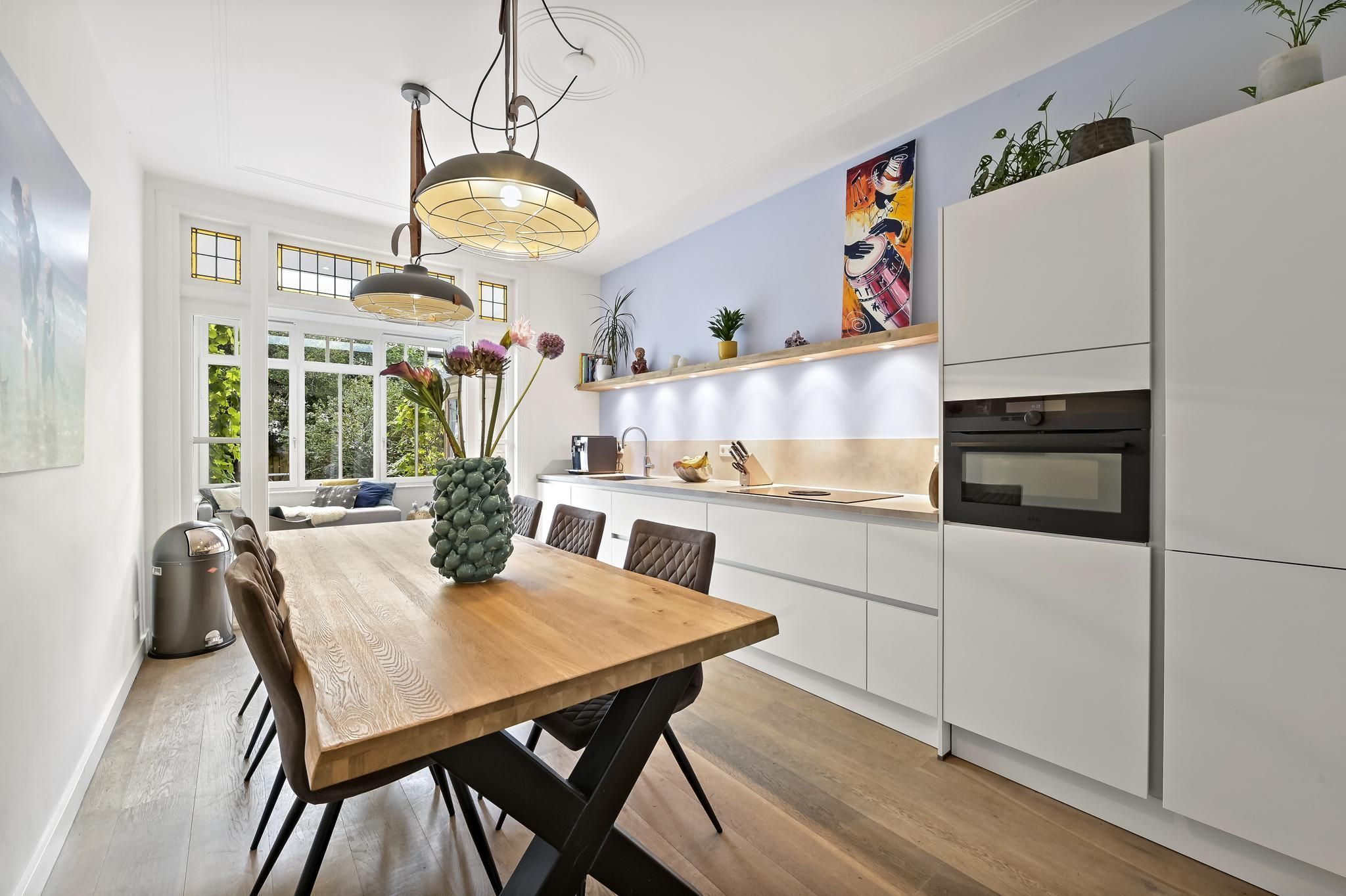English see below Moderne, stijlvolle en recent gedeeltelijk verbouwde parterrewoning met mooie, grote achtertuin in één van de leukste straten van Bezuidenhout. De woning is in 2022 deels uitgebouwd aan de achterzijde en daarbij tevens voorzien van een nieuwe, luxe keuken en een derde slaap- of werkkamer. De prachtige details zoals het glas-in-lood, klassieke deuren, ensuite separatie en ornamentenplafonds zijn nog aanwezig en zorgen voor een sfeervol geheel. De woning is gelegen op een ideale locatie vlakbij de gezellige winkelstraat de Theresiastraat, waar je diverse supermarkten, boutiques, cafés en restaurants kunt vinden. Met de fiets of tram ben je binnen een mum...