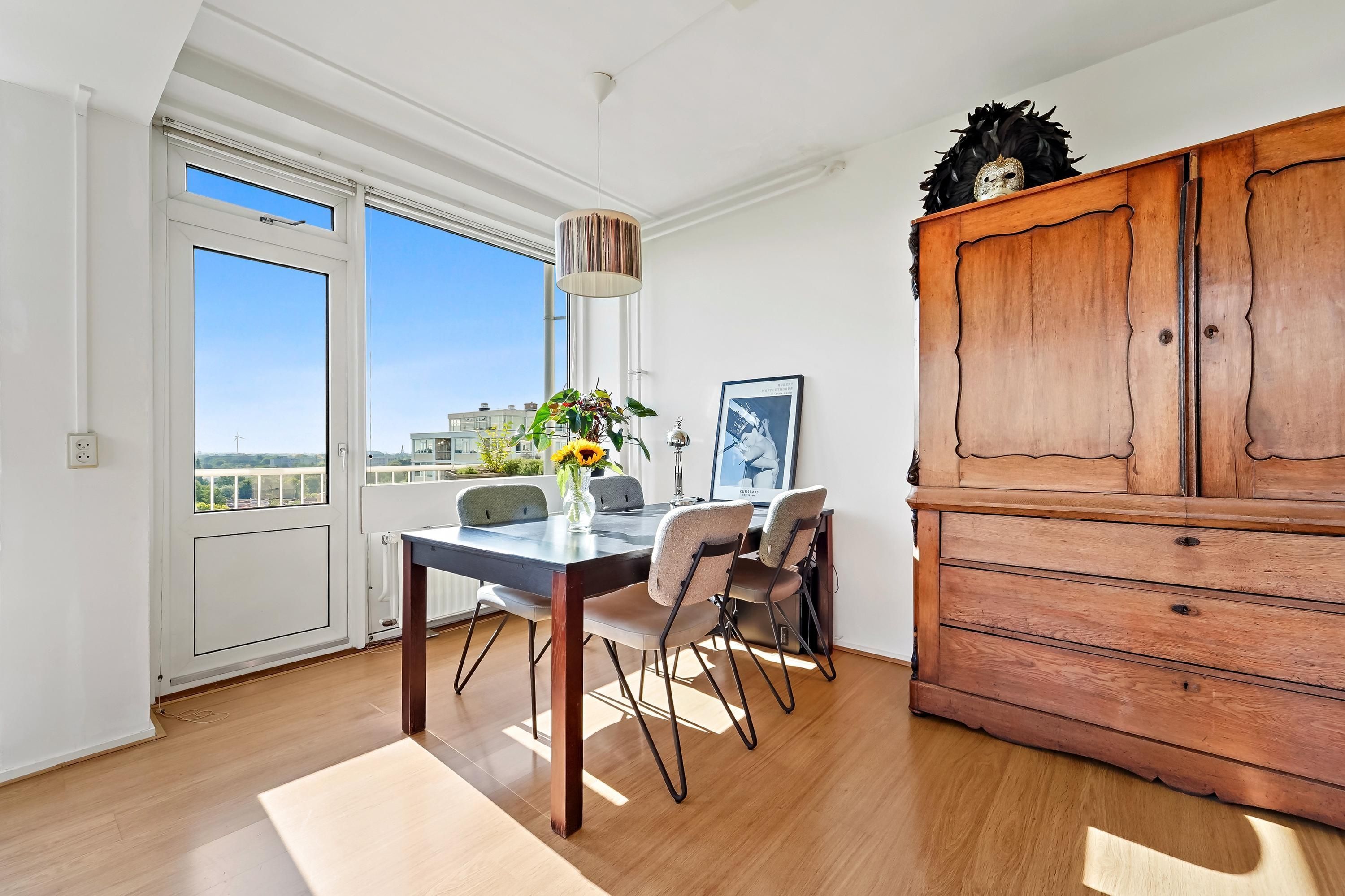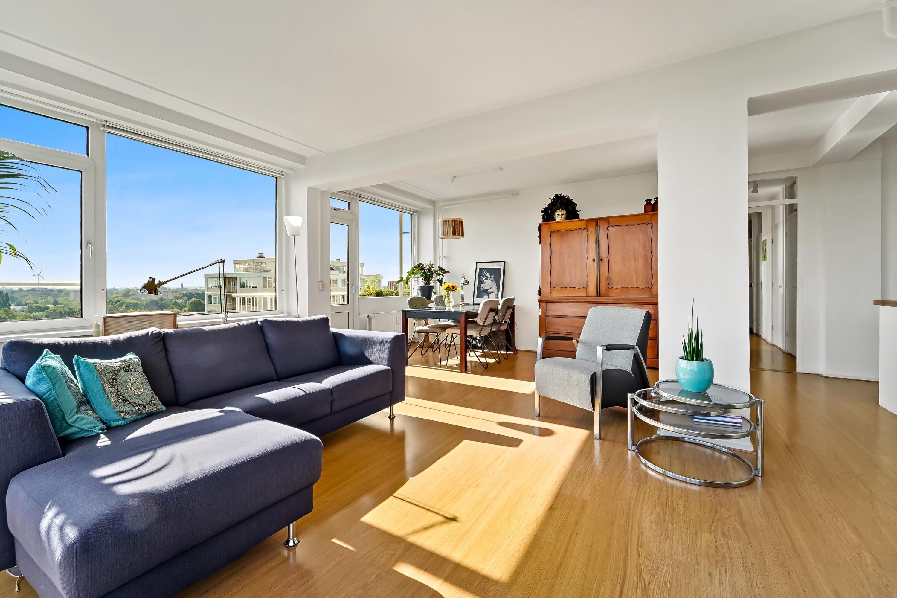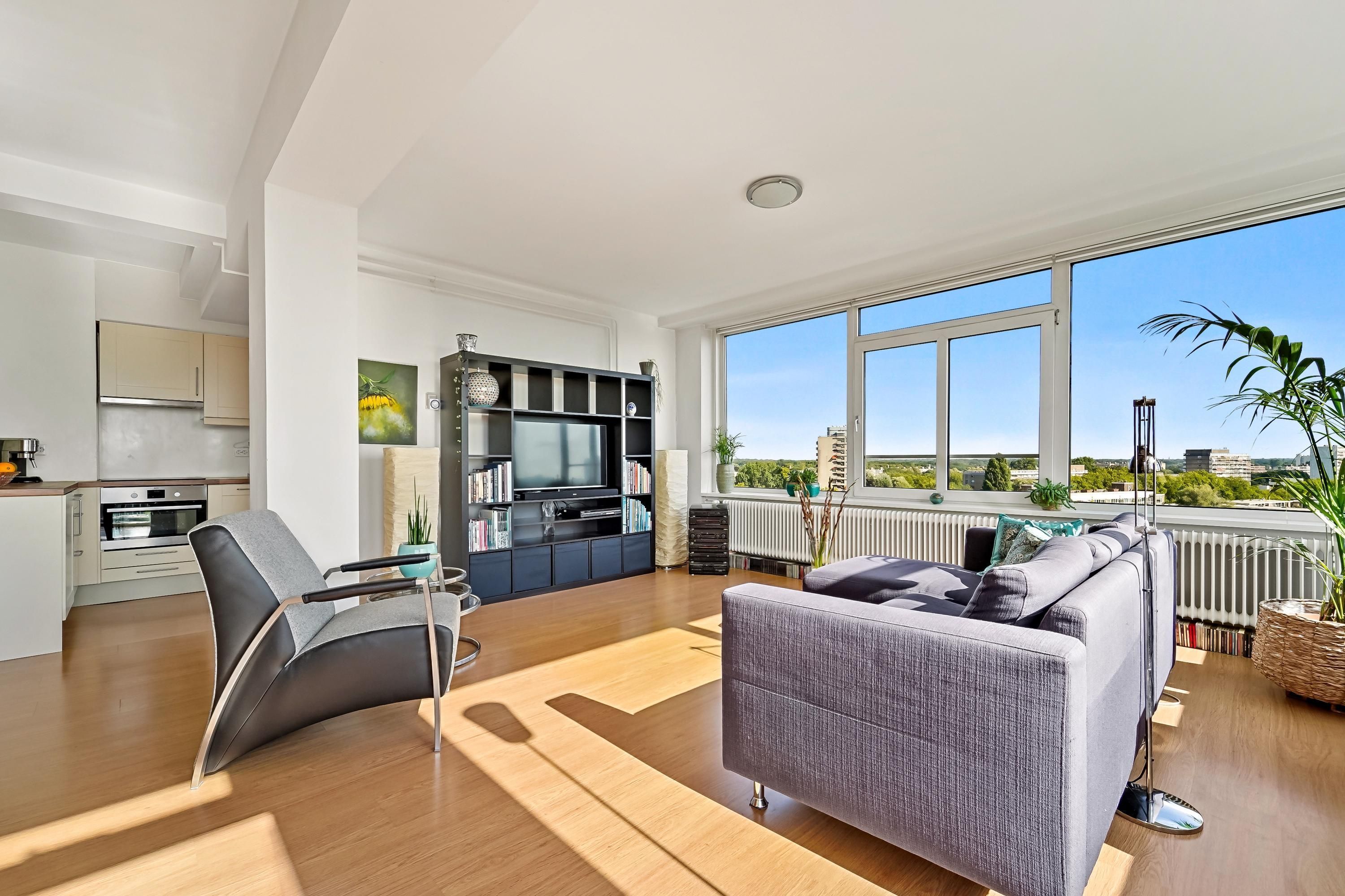 Hooggelegen en licht 3-kamer appartement met geweldig wijds uitzicht! Wonen met prachtig uitzicht? Op de 12de woonlaag van het gebouw "Ceres" ligt dit zeer licht appartement met geweldig uitzicht in bijna alle richtingen. Midden in de gewilde en groene wijk Mariahoeve zit je centraal t.o.v. alles wat je nodig hebt: het centrum van Den Haag, lokaal winkelcentrum Het Kleine Loo, The Mall of the Netherlands, uitvalswegen A4, A12, A13 en N44 en het openbaar vervoer. Ook met de fiets met je snel op het strand of op Den Haag Centraal. INDELING: Entree in centrale hal met bellentableau en brievenbussen, deur naar trap...