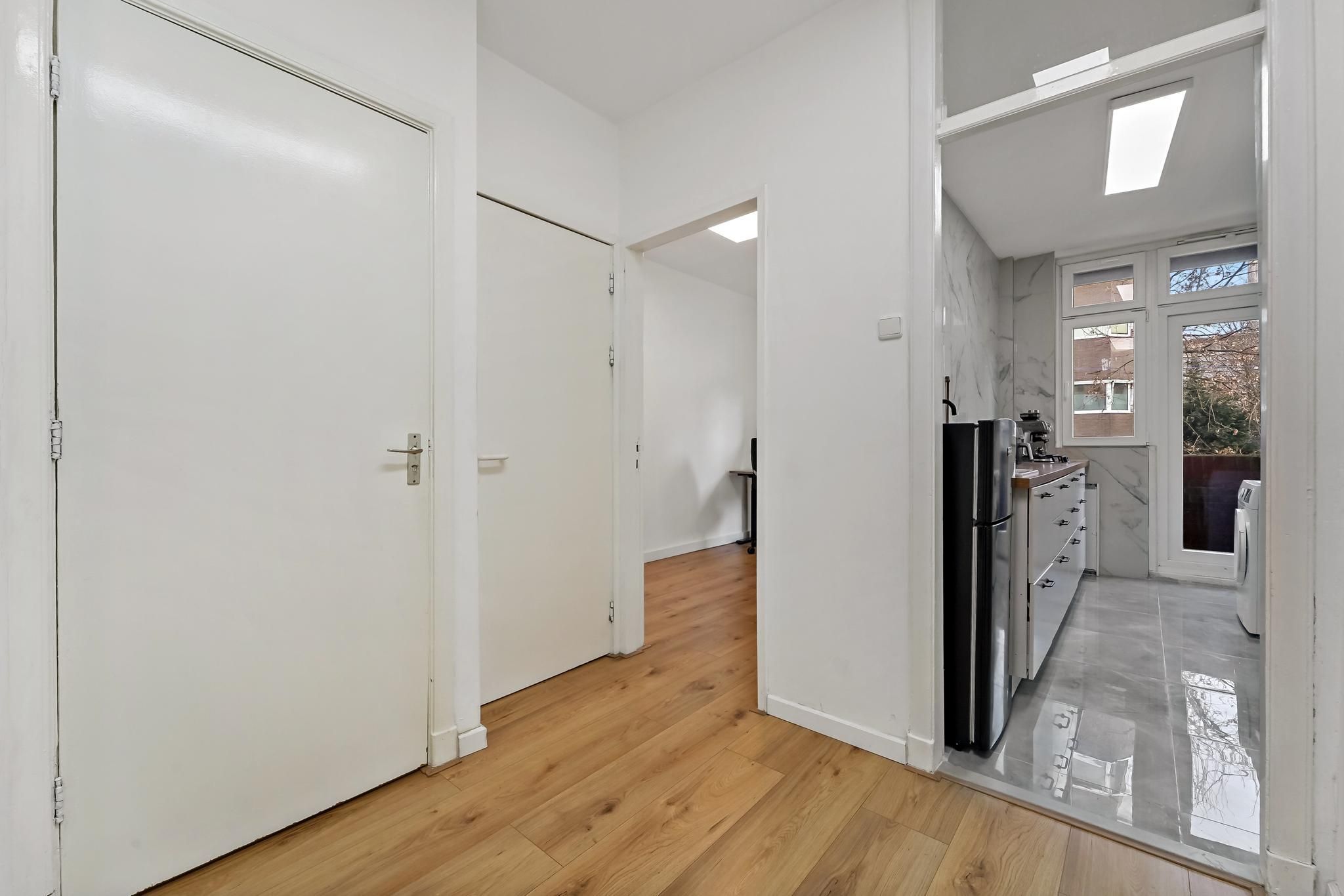 Bent u op zoek naar een ruim en fris appartement met twee slaapkamers, gelegen in het gezellige Bezuidenhout? Dit fijne appartement is instapklaar en heeft alles binnen handbereik; comfortabel wonen in een rustige straat! Winkels, restaurants, scholen en sportfaciliteiten bevinden zich op korte afstand, en de geliefde Theresiastraat is vlakbij, net als Den Haag Centraal station. Op een paar minuten fietsafstand ligt het prachtige Haagse Bos. Indeling: Via open Haags portiek naar 1e verdieping: entree en hal met meter- en bergkast; slaapkamer aan de voorzijde (10 m2) en via twee deuren toegang tot de ruime woonkamer. Dit is een voormalige ensuite; voorkamer (19...