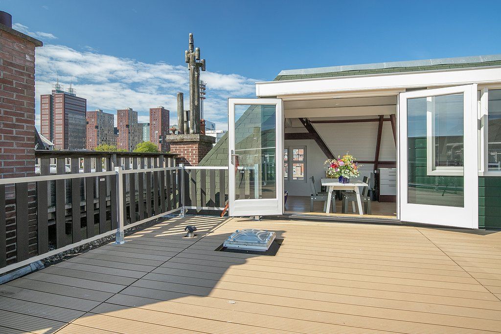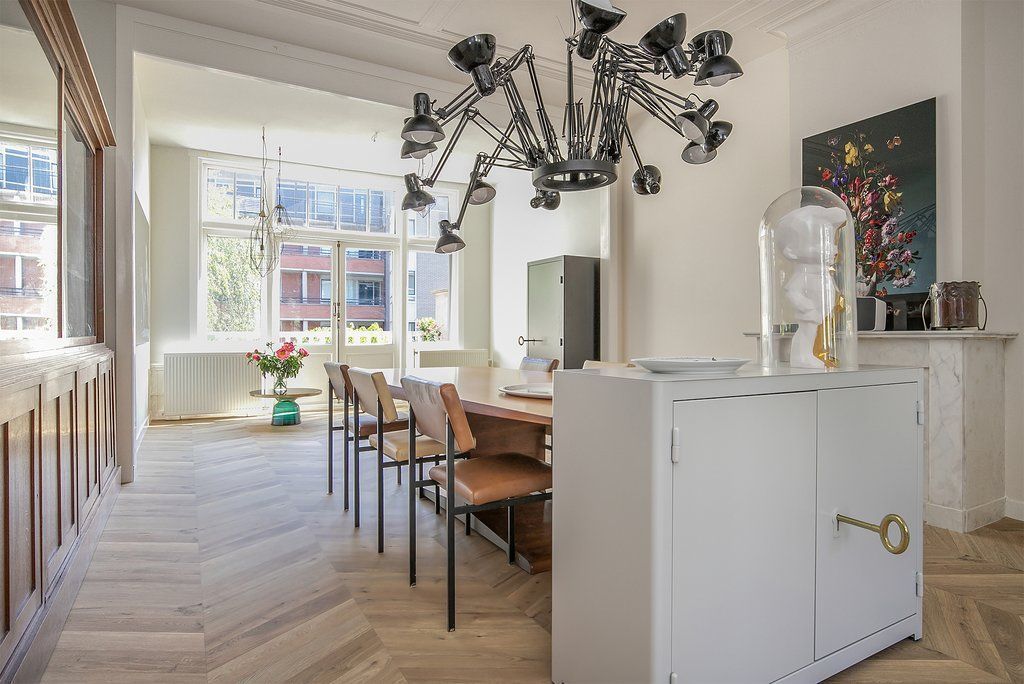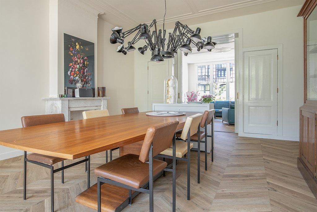 Werkelijk een unieke woning schuilt er achter deze prachtige gevel, kom jij dit ervaren!? Deze geweldige 3-laags bovenwoning (220m2) met dakterras (42m2) heeft karakter in overvloed door de vele originele elementen, zoals glas-in-lood ramen, plafondornamenten, originele schuifseparatie en paneeldeuren. Met 3 woonlagen 5 slaapkamers, twee keukens en een woonkamer van 4.80 breed en 13m lang heb je aan ruimte geen gebrek. In de zomermaanden kun je optimaal genieten op het ruime dakterras met de hele dag zon en de een tweetal extra terrassen, ’s winters is het binnen door de heerlijke sfeer mede dankzij de hoge plafonds en het karakter van de woning goed toeven. Daarnaast ligt...