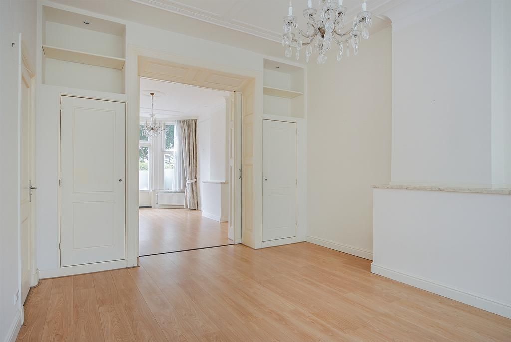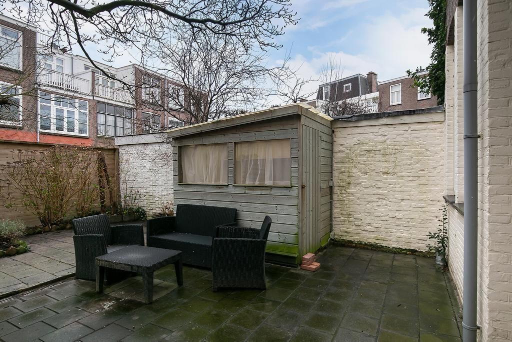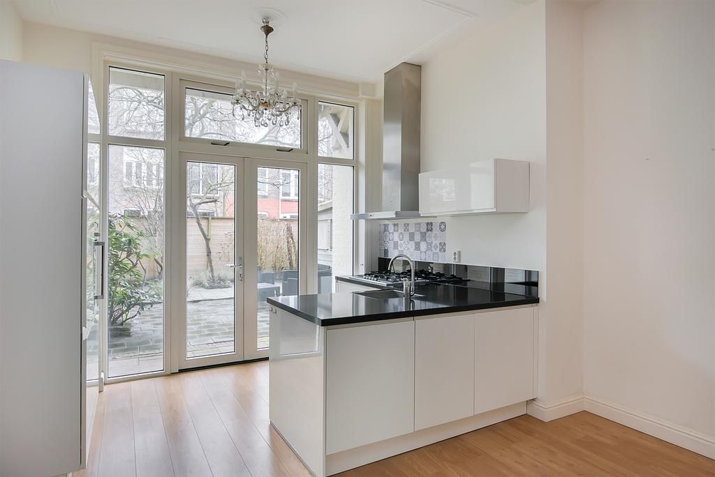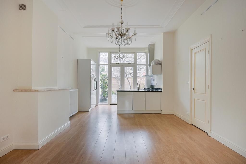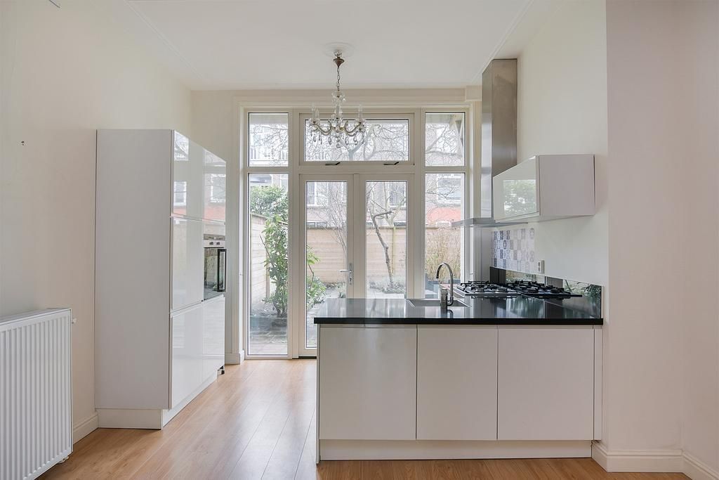 Renovated in 2015 BEAUTIFUL and BRIGHT ground floor 3-room apartment with full front and back garden! This apartment is located in the Statenkwartier area with its cozy shops on the "Fred" (Frederik Hendriklaan) and close to international organizations such as OPCW, Europol and the Tribunal. Public transport is just around the corner and the beach is just a few minutes away. Layout: Communal entrance, entrance apartment, spacious living/dining room en suite with original separation doors and cupboards on both sides, laminate flooring, fireplace and patio doors to the front and back garden. Open modern L-kitchen with Siemens built-in appliances such as refrigerator, 5-burner...